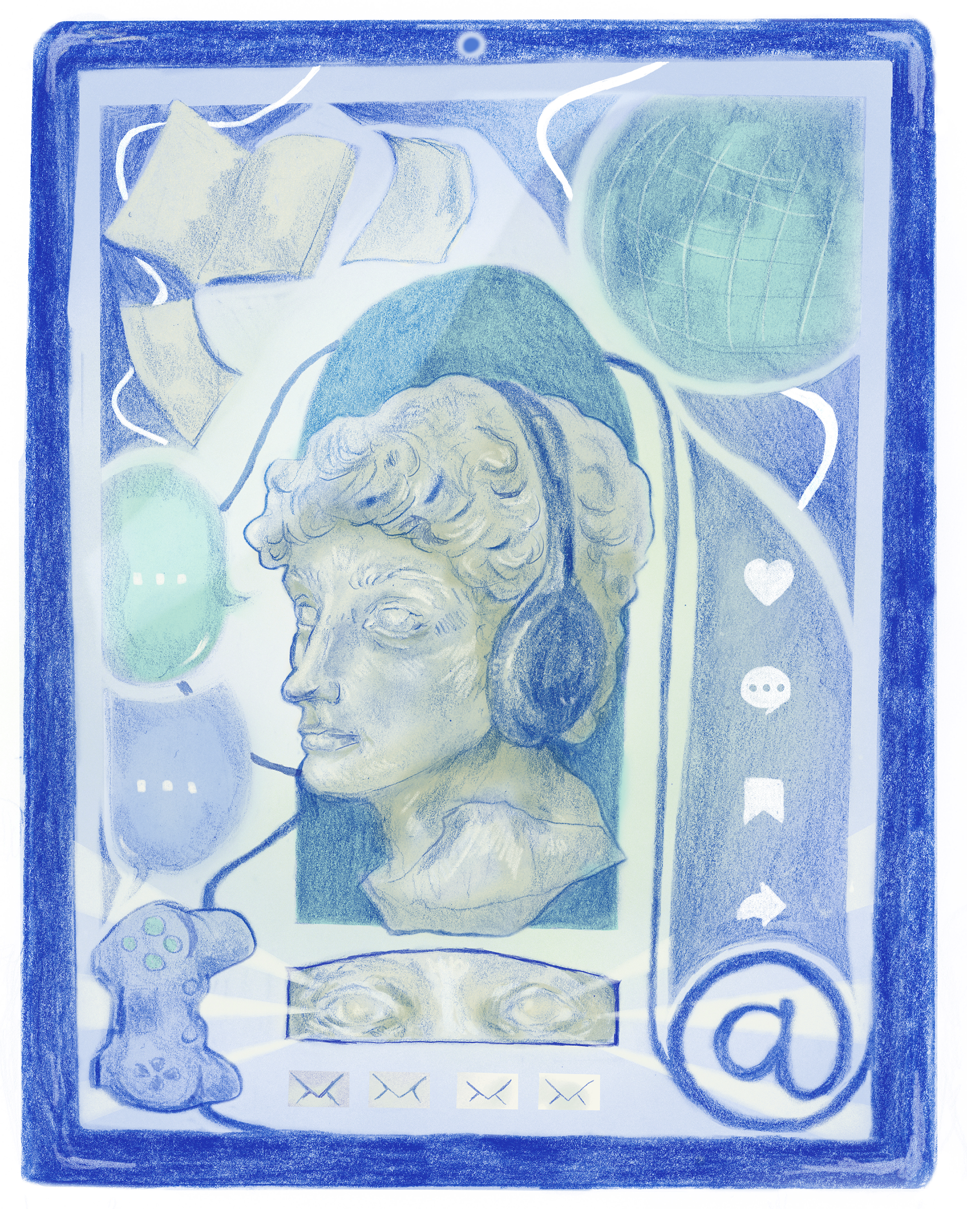 An collage in iPad form, about screentime and the internet.